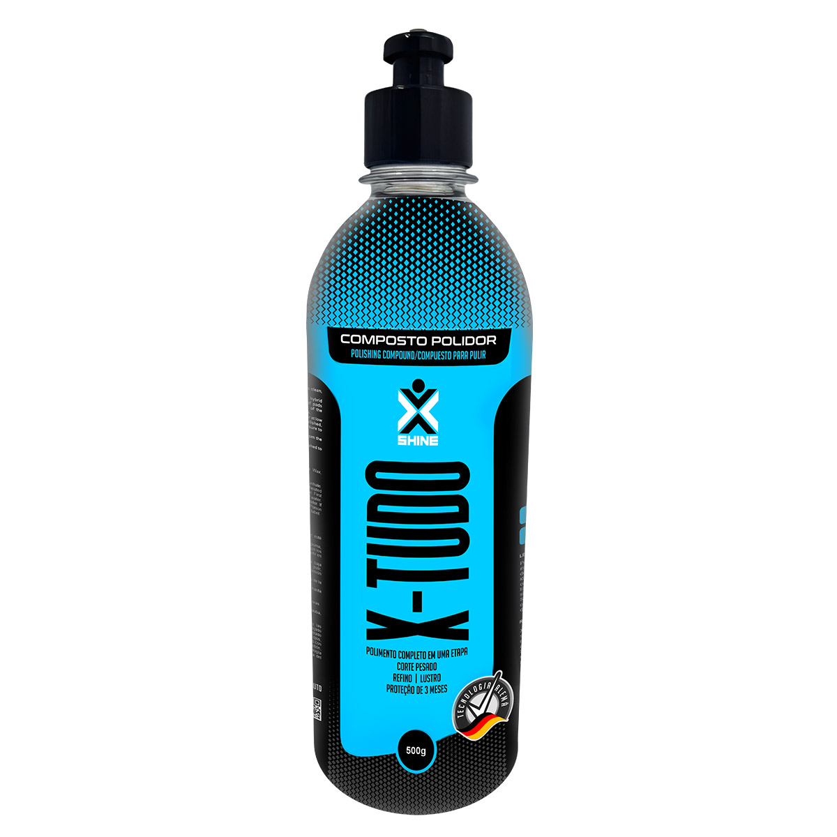 O composto polidor X-TUDO é um produto de etapa única (one-step) ou seja, permitindo realizar as três etapas principais do polimento com um único produto, mediante troca de boinas. Além disso, o produto ainda entrega uma proteção à base de água (selante) na pintura com durabilidade de até 3 meses.
