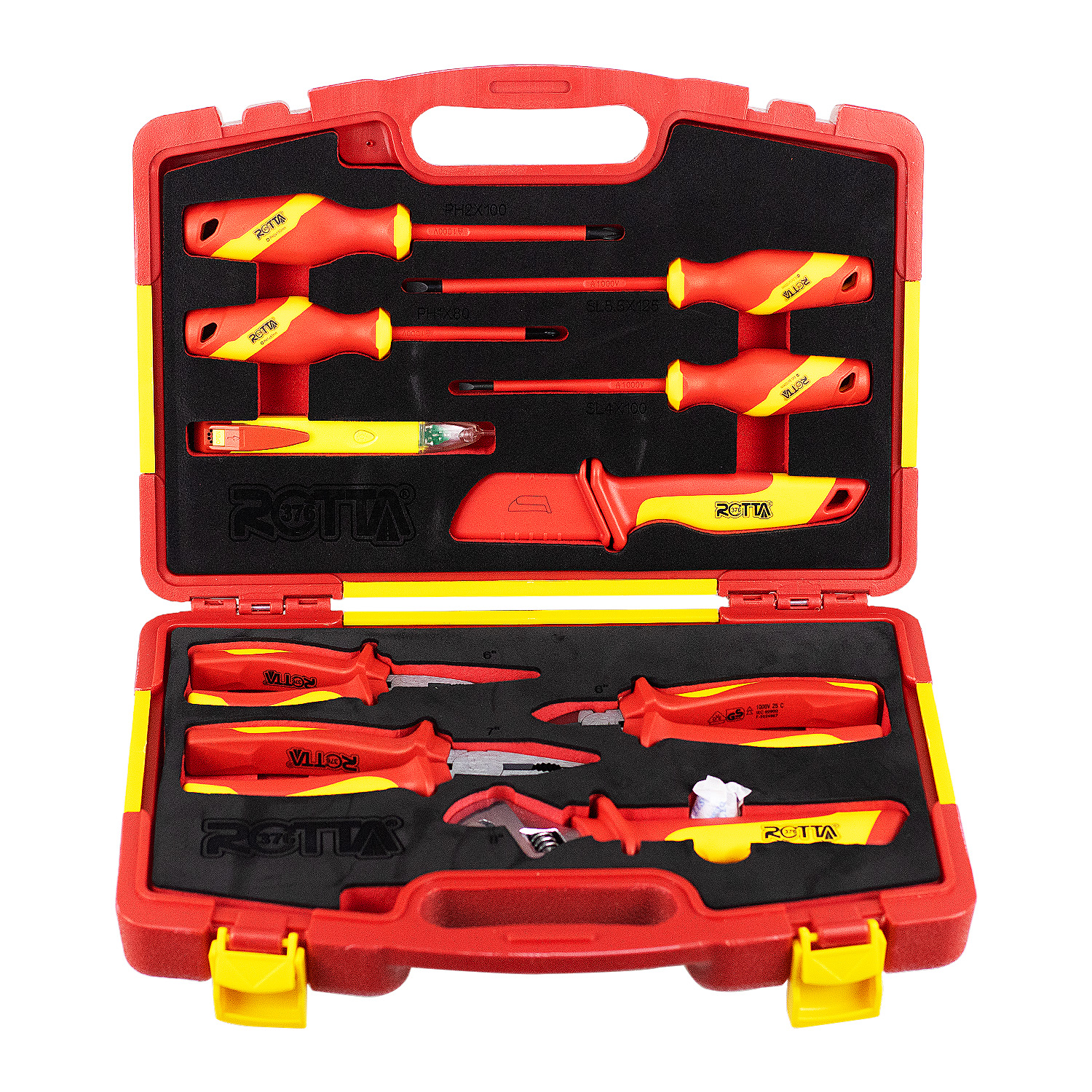 O Jogo de Ferramentas Isoladas VDE Rotta376 com 10 peças é ideal para eletricistas e profissionais que necessitam de segurança, praticidade e mobilidade em serviços elétricos.